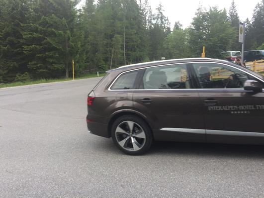 Det är fina Audi bilar som kör Bilderbergarna till Interalpen hotellet från flygplatsen i Innsbruck. Press For Truth lyckades fånga in bilarna då de tankade vid BP.
